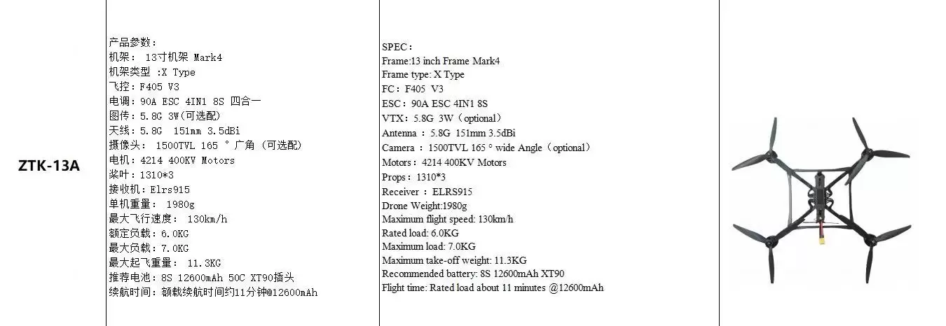 Главная / Продукты / Платформа для дронов / FPV-дрон / 13A FPV 13-дюймовый FPV-дрон с ИИ-наведением и оптоволоконной передачей данных Материал корпуса : углеродное волокно